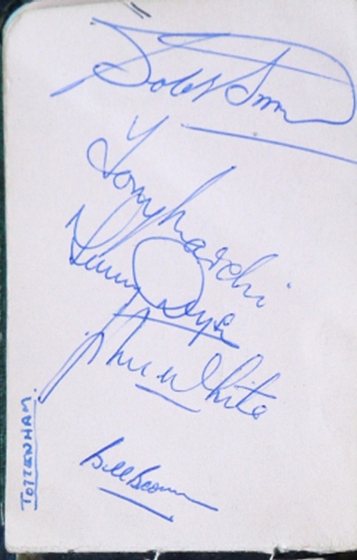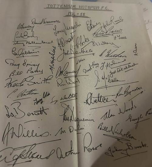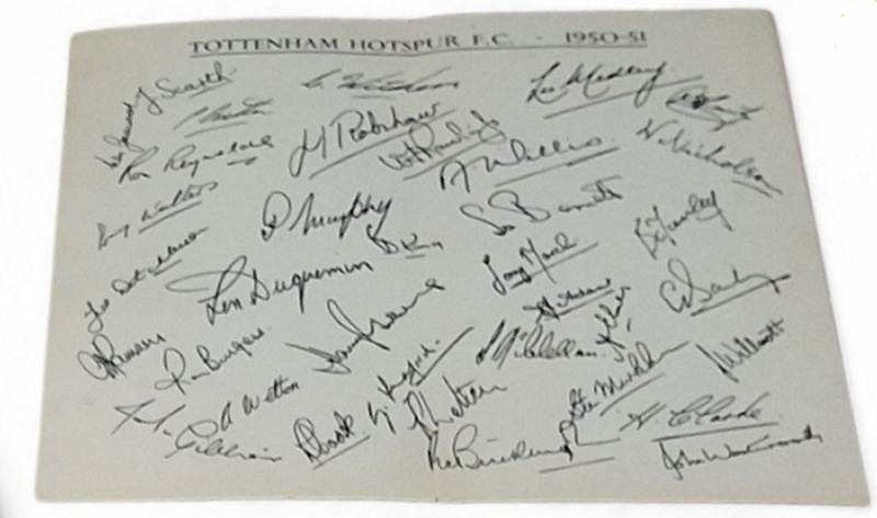 | An autographed photo of the Spurs 1961 and 1962 FA Cup winning team. |